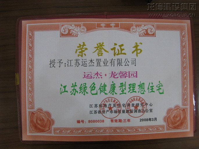 江蘇綠色健康幸理想住宅榮譽(yù)證書