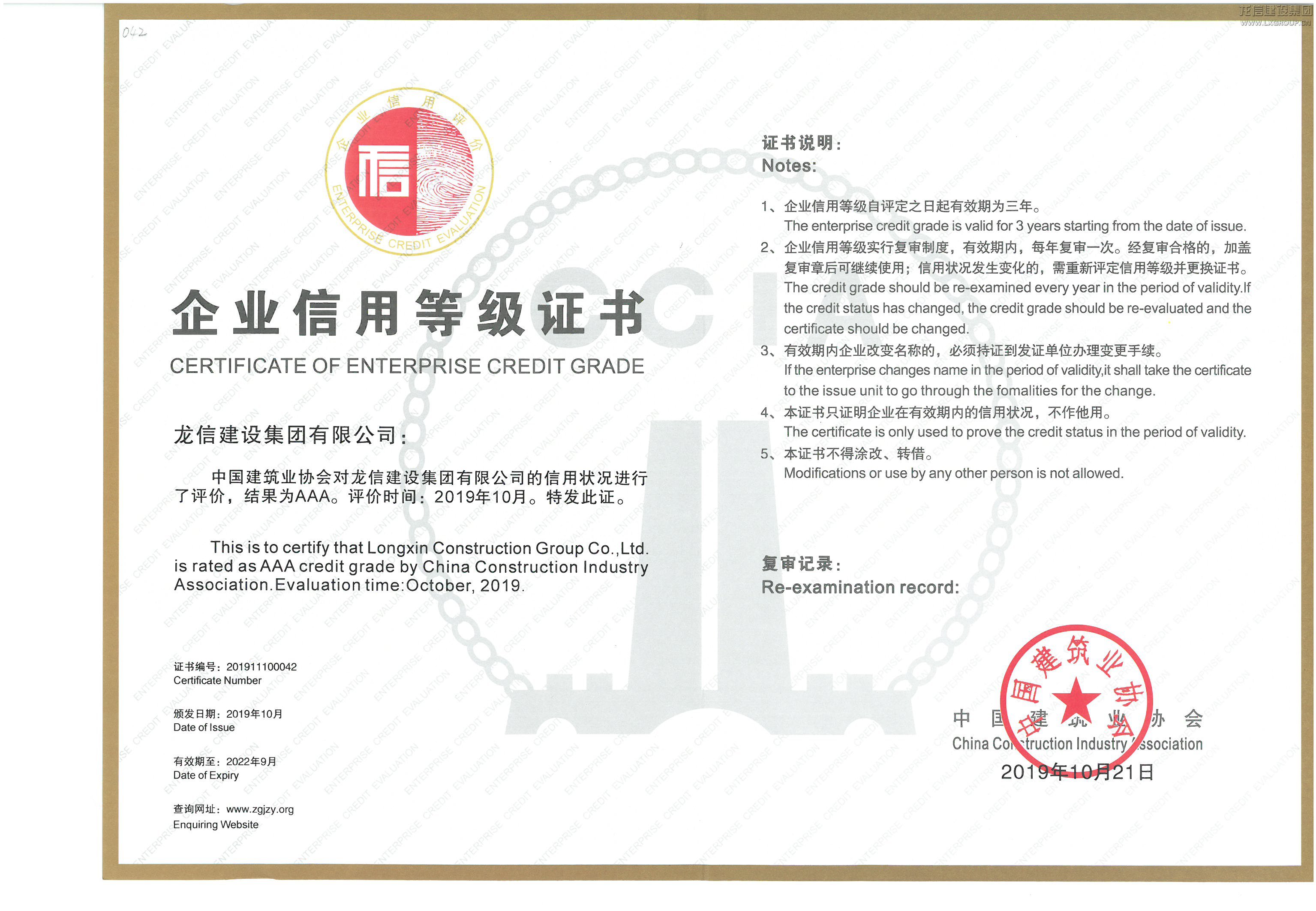中國建筑業(yè)協(xié)會(huì)企業(yè)信用等級(jí)AAA級(jí)