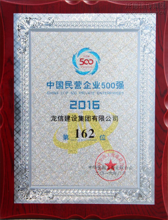 2016年中國民營企業(yè)500強(qiáng)162位