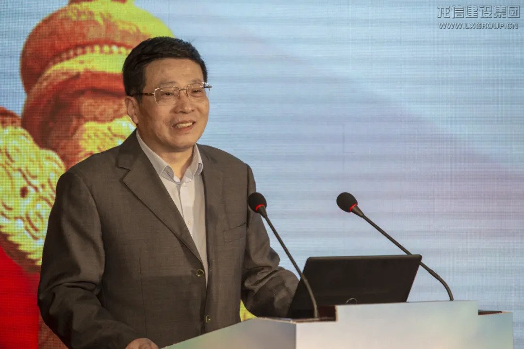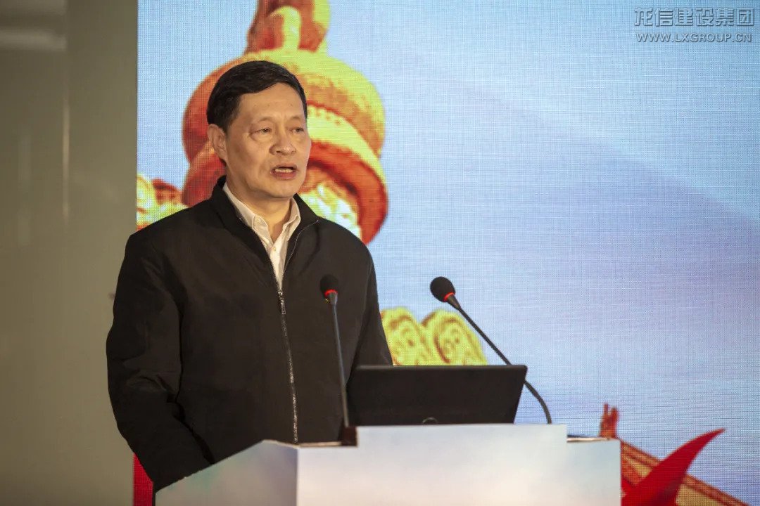 儀式上,龍信集團黨委書記、董事長陳祖新致辭,他表示,龍信集團始終堅持以黨建為統領推動企業高質量發展。十九屆五中全會審議通過的“十四五規劃”和二〇三五年遠景目標為中國建筑業的發展指明了新的發展方向,龍信集團將堅定不移貫徹新發展理念,以科技創新為驅動,依托國家博士后科研工作站、龍信發展研究院等平臺,在創新中求突破,積極推動綠色建筑、智慧建筑發展,積極構建新時期企業發展新格局。