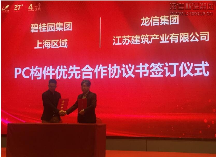 碧桂園上海區(qū)域與龍信集團簽訂總承包工程優(yōu)先合作框架協(xié)議書,與龍信集團江蘇建筑產(chǎn)業(yè)有限公司簽訂PC構(gòu)件優(yōu)先合作框架協(xié)議書。