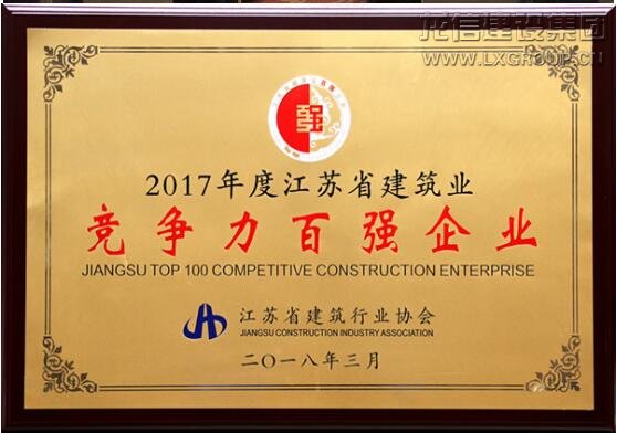 2018年3月28日,江蘇省建筑行業協會2018年會暨2017年度江蘇建筑業“雙百強”企業評價排名發布會在南京召開。會議對2017年度江蘇省建筑業競爭力百強企業、最具成長性百強企業、優秀企業、優秀企業家等進行了表彰和授牌。龍信集團榮獲2017年度江蘇省建筑業雙百強企業,董事長陳祖新榮獲2017年度江蘇省建筑業優秀企業家。