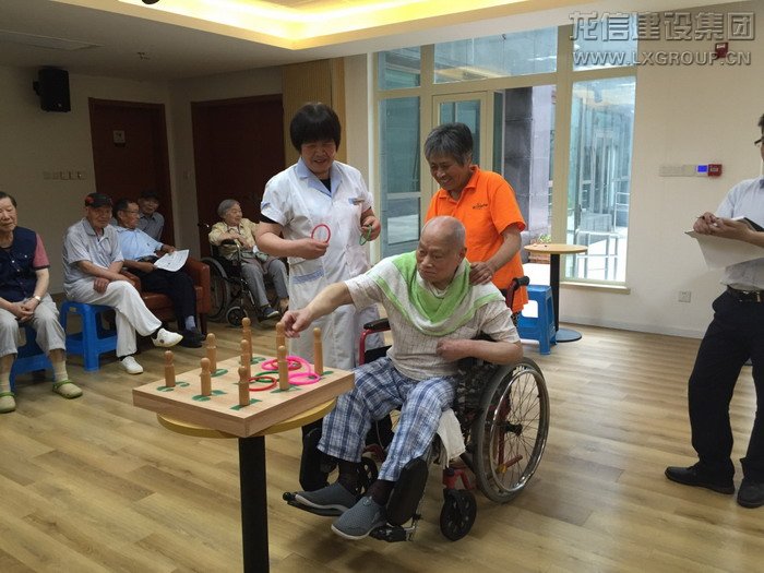 第二個比賽項目是快樂套圈。長者們認(rèn)真的投擲著手中的套圈,為套中而欣喜,也為落空而遺憾。但是最幸福的事,不是你摘得了桂冠,而是看到你的臉上洋溢出許久未見的笑容。1301室的陳叔叔自中風(fēng)后身體狀況一直不佳,平時的起居飲食需要保姆的照料,他坐著輪椅來到規(guī)定的比賽投擲線,用自己稍稍顫抖的右手接過套圈,當(dāng)大家看到這樣的距離對他來說比較困難的時候,參賽的其他叔叔阿姨主動提出要為他縮短距離。在樂頤薈這個大家庭里,每一次活動,規(guī)則不重要,輸贏更不重要,重要的只有這彌足珍貴的鄰里情誼。當(dāng)陳叔叔投中時,他笑了,這一笑溫暖了在場的所有人。最終,508室的俞阿姨、1101室的施叔叔、1301室的陸阿姨奪得了前三甲。