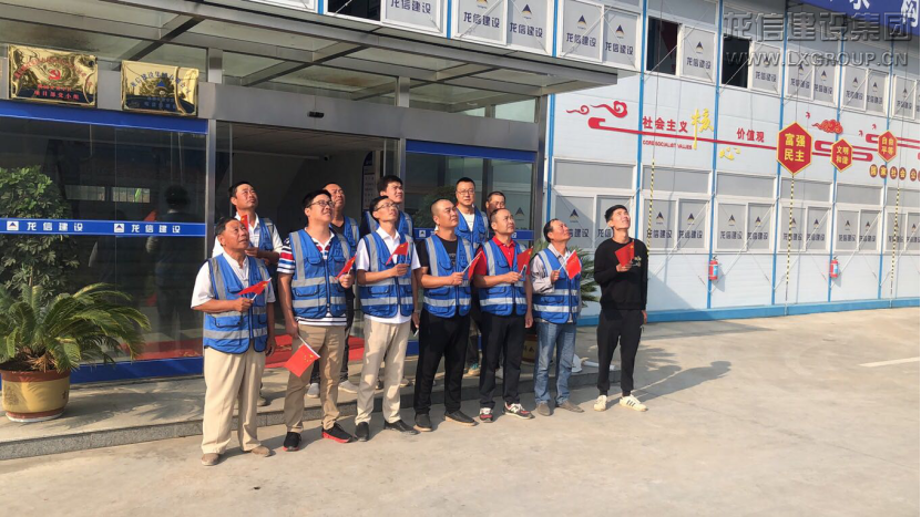 慶中秋國慶|龍信集團白廟安置小區(qū)項目部、桃園安置小區(qū)項目部舉行升國旗儀式