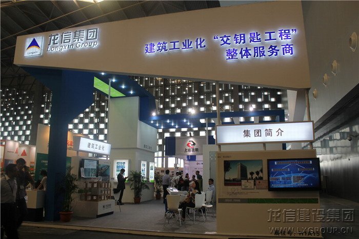 龍信集團展位在1號門入口處的顯著位置,展位面積90平米,劃分為集團介紹、建筑工業化技術體系、PC工廠預制及安裝、代表工程、社區養老共5個板塊區域,重點介紹了公司的總體概況、研發實力、技術體系、“交鑰匙工程”解決方案、PC工廠規劃實施、構件預制、構件吊裝、CSI住宅與全裝修技術、預制裝配式代表項目、全裝修代表項目、“候鳥式”社區養老模式等內容。