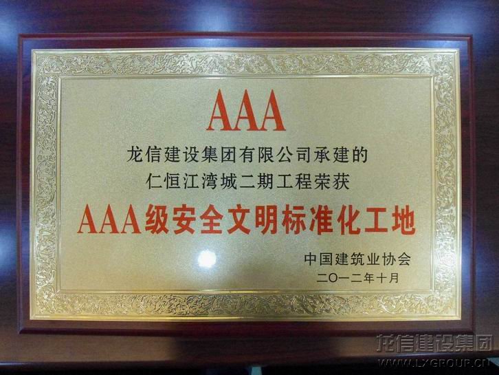 仁恒江灣城二期項目獲得“2012年AAA級安全文明標(biāo)準(zhǔn)化誠信工地”榮譽稱號