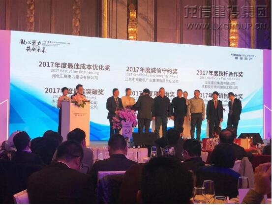 12月18日,復星地產2017年度“凝心聚力,共創(chuàng)未來”合作供應商大會在上海萬達瑞華酒店勝利召開。龍信集團被復星地產授予“2017年度鐵桿合作獎”榮譽稱號,龍信二分公司二部經理施建昌應邀出席頒獎大會并領獎。