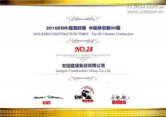 11月25日, 由美國《工程新聞?dòng)涗洝?ENR)和中國《建筑時(shí)報(bào)》共同主辦的2016年中國承包商80強(qiáng)榜單在福州發(fā)布,龍信建設(shè)集團(tuán)有限公司第八次入選該榜單,此次名列第28位,較去年排名提升">